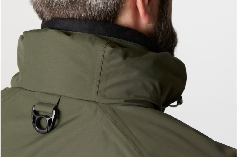 - 7. Kapucňu je možné odopnúť od goliera a môže byť upravená v obvode/viditeľnosti a hĺbke. Kapucňa má tienidlo a môže byť zabalená- schovaná do goliera.